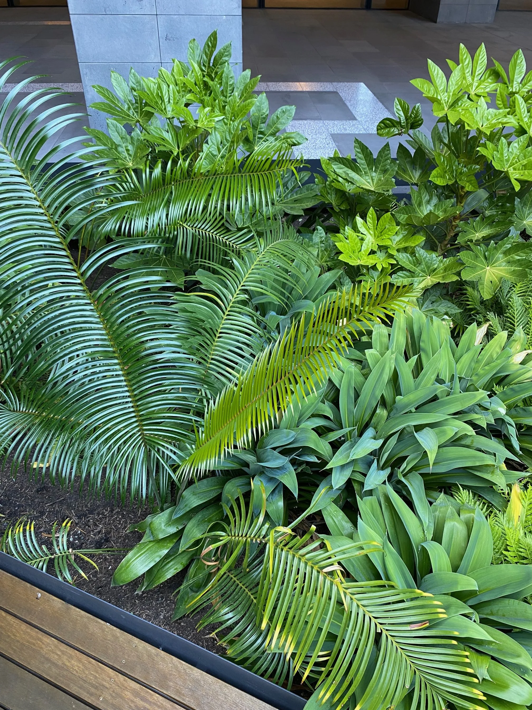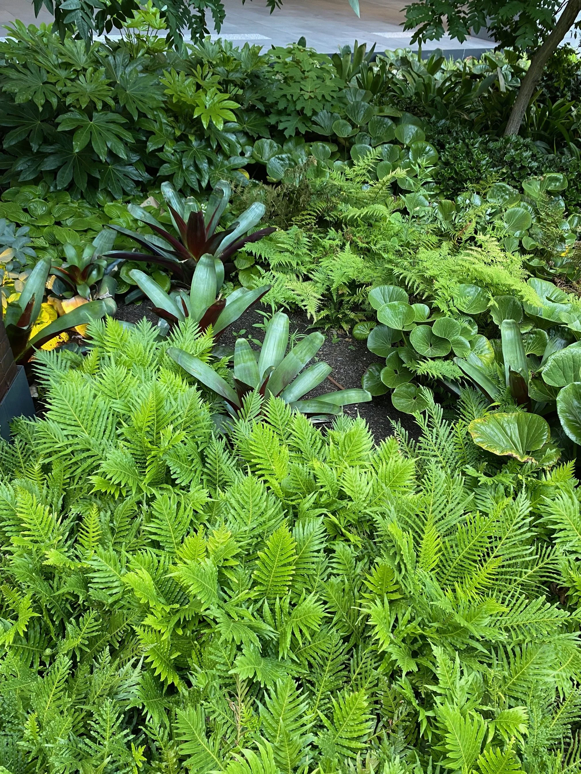 There’s something really appealing about mass greenery with mixed foliage types that I quite like. I really like that the garden beds are sunken which gives the space another added element of depth.
