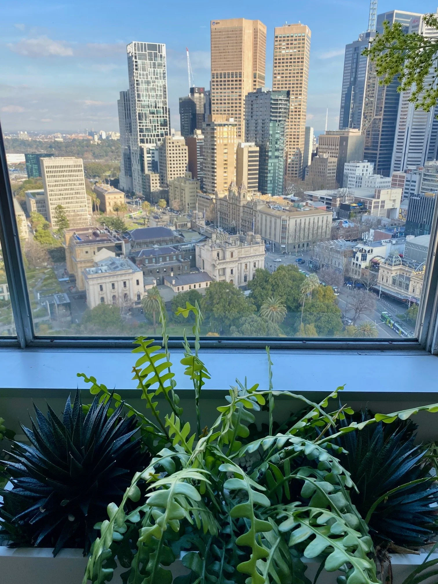 There are some plants indoors which were good to see what’s growing in this environment AND also has amazing views of the Parliament House gardens and surrounding parklands with views out east and south over the MCG and beyond and west over the city skyline.