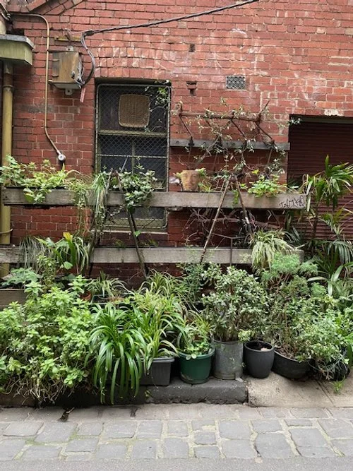 I love Melbourne CBD laneways. You never know what you’ll discover and especially what greenery you might see. And two favourites that I enjoy visiting often are Meyers Place and Guildford Lane.
