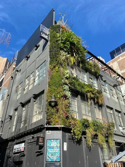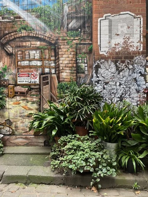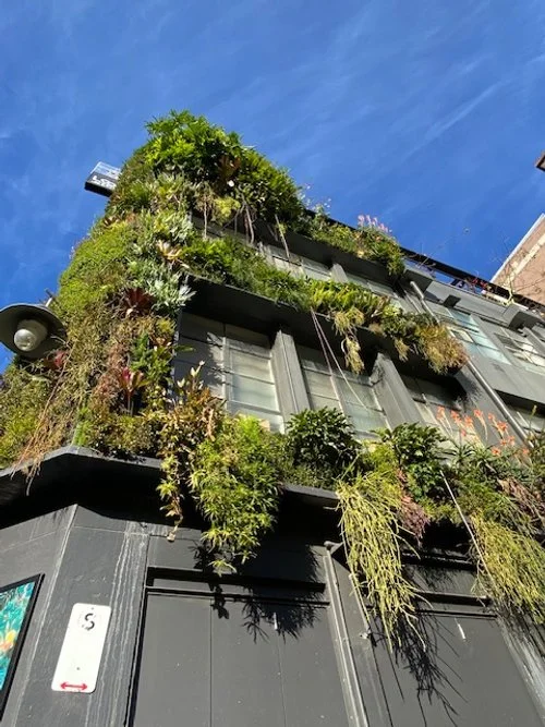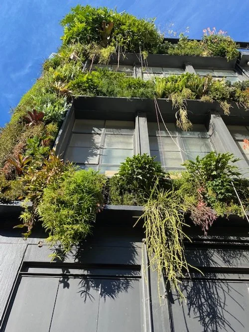 Meyers Place runs between Bourke St & Little Collins St and I particularly enjoy the large nature mural at the corner and the greenwall facade of Loop Roof. I’ve often stood there looking up discerning what’s growing, how it looks and pondering which of these plants I can try using in different locations myself based on how well they’re growing here.